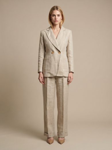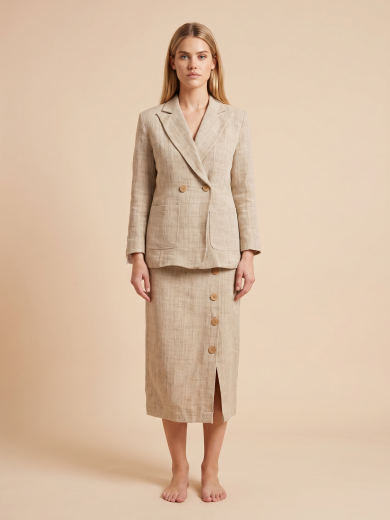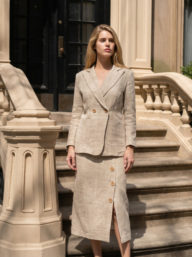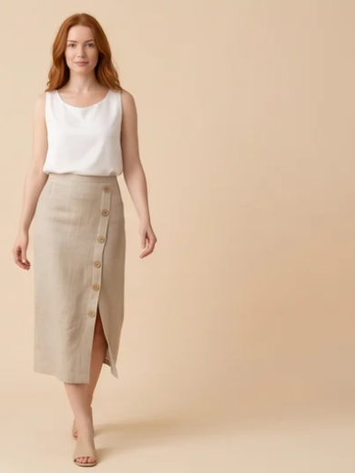Classic white wrap dress with a flexible belt made from breathable 100% Orange Fiber.