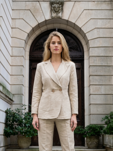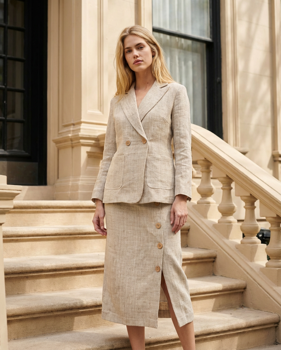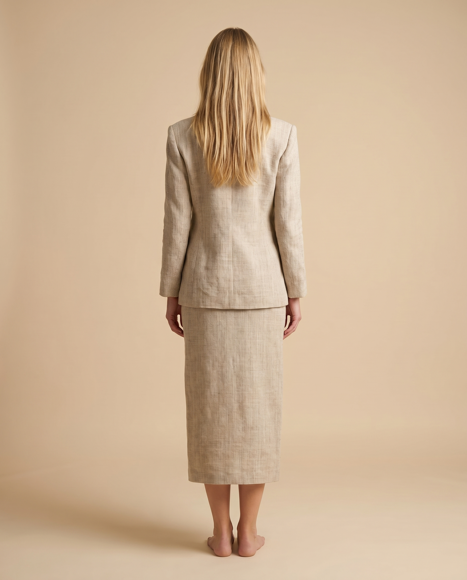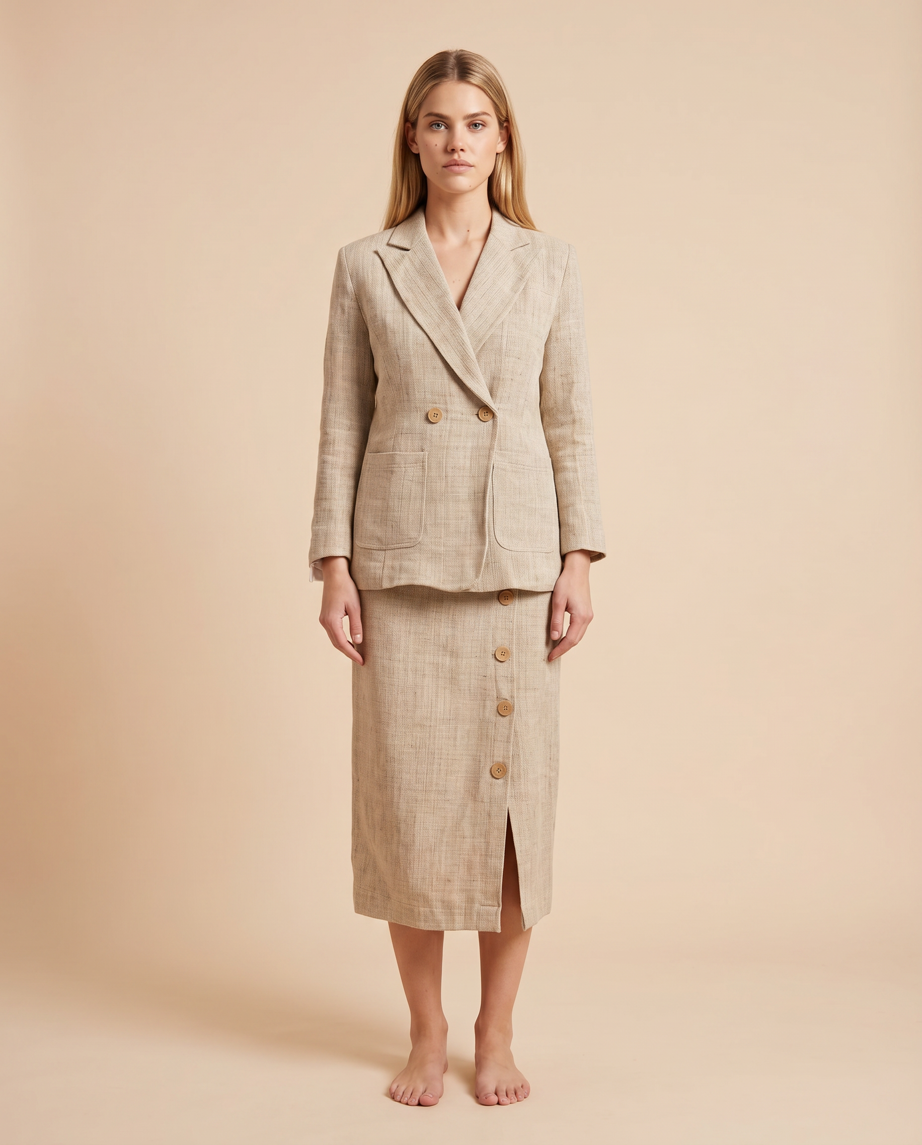 The result is a structured yet comfortable textile with a distinctive handwoven character and natural texture.