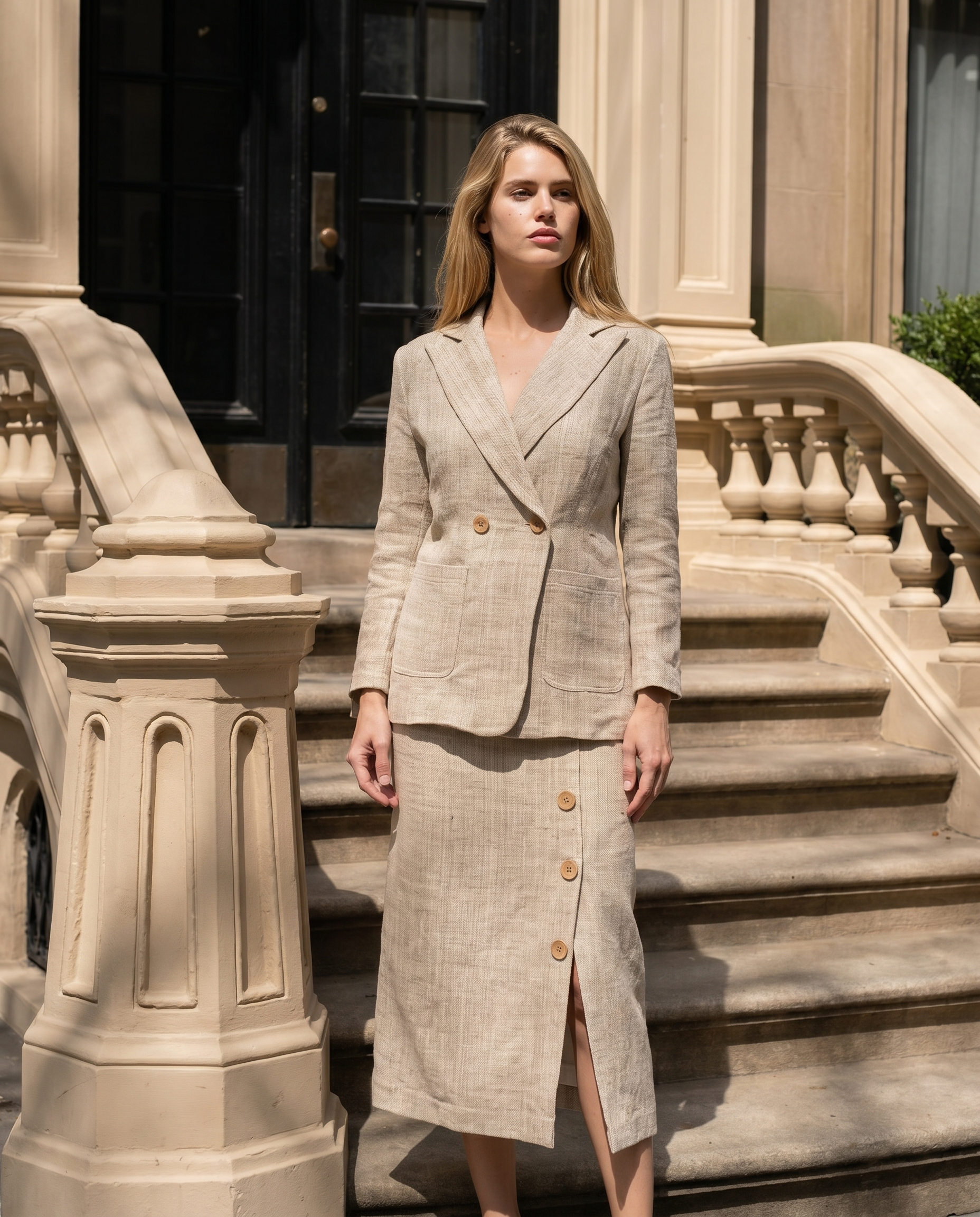 Crafted from a premium handloom blend of 50% hemp and 50% hand-spun cotton, this fabric combines strength, structure and natural softness.